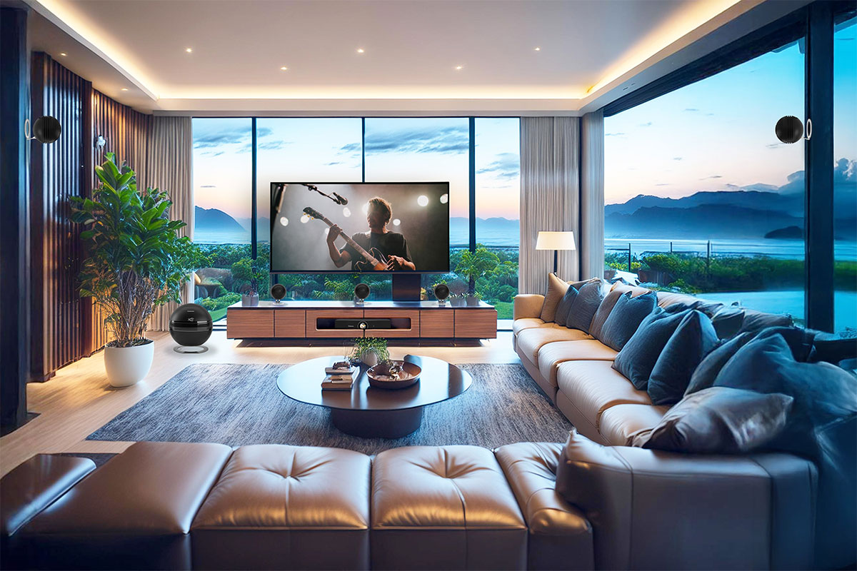 Dank seiner schlichten Linien, matten Oberflächen und kabellosen Struktur integriert sich das System nahtlos in unterschiedlichste Einrichtungsstile – vom urbanen Loft über die moderne Villa bis hin zum klassischen Wohnsalon. Es ist Technik, die Architektur versteht.